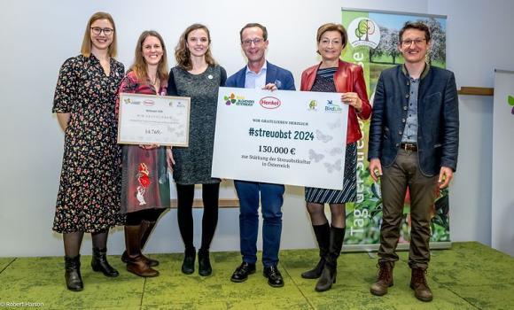 13 ausgewählte Projektpartner sichern auf 40 Hektar die Wiederherstellung dieses bedrohten Biotoptyps und die Rettung alter Obstsorten. Henkel finanziert das Streuobstwiesen-Projekt der ObstStadt Wien mit 12.500 Euro.